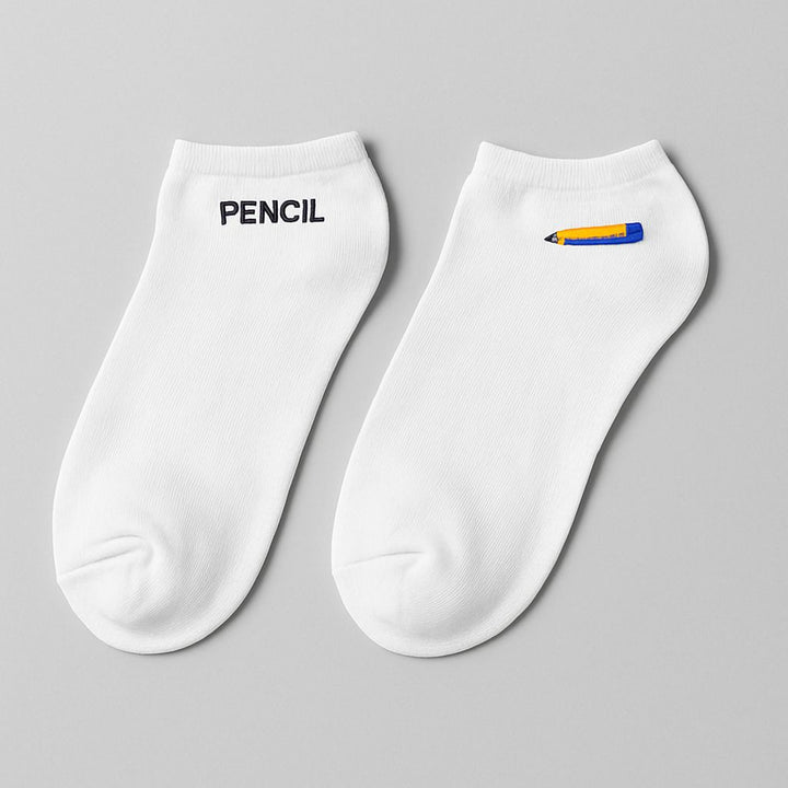 Pencil Low Cut White Socks
